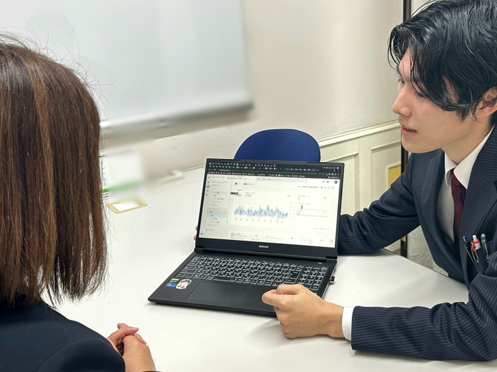 営業部長に同行し、飛び込み営業や人件費、時間単価等を一から学ぶ。