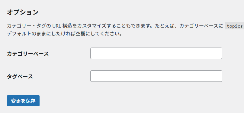 パーマリンク設定の下までスクロールすると、左下に「変更を保存」と出てきます。